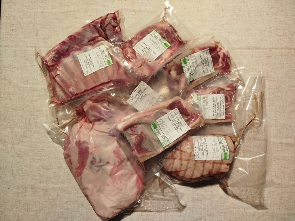 Je vous propose plusieurs colis de viandes de porc et d’agneau.