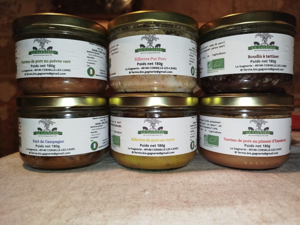 Je vend des bocaux issus des porcs que j'élève, plusieurs recettes sont disponibles.